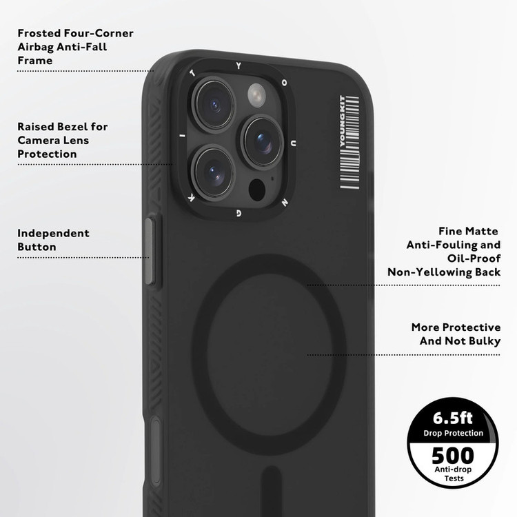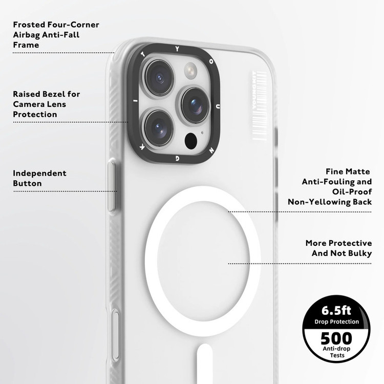 برند یانگکیت ، برندی که در مدت زمان کوتاهی توانسته در دل آیفون داران جا باز کند! قابهای YOUNGKIT بواسطه طراحی جدید و بسته بندی خاص خود در شبکه های اجتماعی ترند شدند و بازار خوبی برای خود بوجود آوردند. بسته بندی قاب های یانگ کیت شدیدا برای هدیه دادن مناسب هستند و قطعا طراحی چشم نواز آن ها ، عزیزانتان را شگفت زده میکند. قابها از پلاستیک بسیار نرم و باکیفیت تشکیل شده اند. دکمه های نرم و روان و برش های لیزری دقیق جزو مزایای دیگر این سری قابهای برند یانگ کیت میباشد. اصلی ترین دلیل تفاوت قاب های یانگ کیت ، طراحی متفاوت و خاص آن هاست ؛ طراحی که شاید در دست هر آیفون داری نبینید!! همین امر باعث میشود تا داشتن این قاب شما را از آیفون داران دیگر متمایز کند. ضربه گیری خوب و طراحی مهندسی شده و حرفه ای از مزایای دیگر قاب یانگ کیت هستند. در داخل قاب طراحی بصورت شیار شیار انجام شده تا هوا به سادگی رد و بدل شود و از داغ شدن دستگاه جلوگیری کند. متریال استاندارد این قاب موجب شده تا هیچگونه اختلالی در آنتن دهی بوجود نیاید و با خیال راحت میتوانید از این قاب استفاده کنید. بصورت کلی اگر بدنبال یک قاب حرفه ای ، با کیفیت و طراحی خاص هستید قطعا قاب های یانگ کیت را به شما توصیه میکنیم. مهمترین ویژگی کاور Hidden Sand Matte Magsafe پشتیبانی آن از Magsafe است که یعنی خاصیت آهنربایی دارد.بنابراین میتوانید خیلی راحت شارژر بی سیم را به آن بچسبانید تا گوشی شروع به شارژ شدن کند.دیگر مجبور نیستید برای شارژ وایرلس قاب را دربیاورید.در عین حال نسبت به سایر قاب ها برتریهای بسیاری دارد: امنیت گوشی را تضمین میکند و جلوی هرگونه آسیبی را به بدنهی حساس گوشی میگیرد.با خرید این قاب به بهترین نحو از گوشی خود مراقبت میکنید و در عین حال ظاهری فوقالعاده هم به آن هدیه خواهید کرد