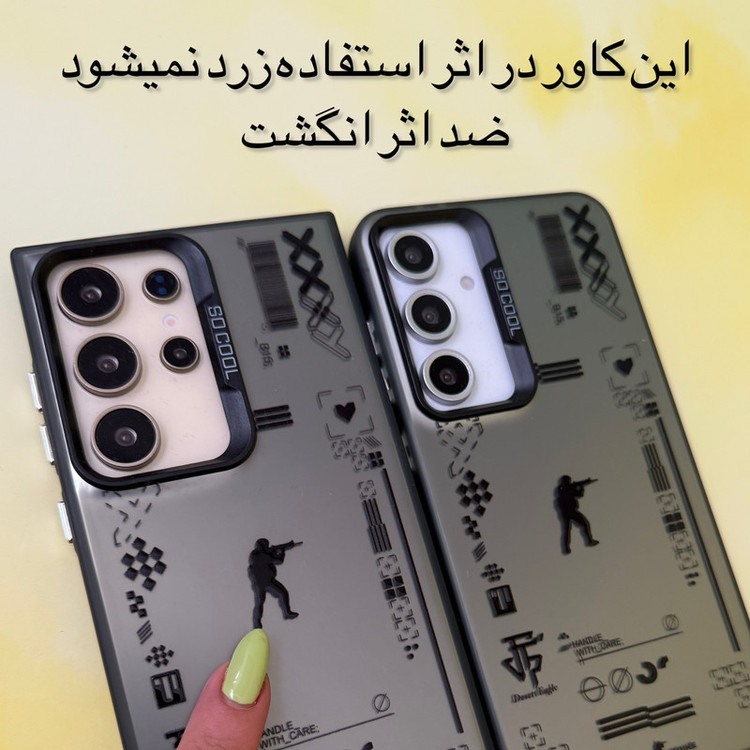 کاور گیمینگ So Cool طرح Counter-Strike انتخابی ایدهآل برای گیمرها و عاشقان سبک اکشن است. طراحی منحصربهفرد این کاور با الهام از بازی محبوب Counter-Strike، ترکیبی از المانهای گرافیکی جذاب، سرباز در حال تیراندازی، بارکدهای فانتزی و نمادهای مدرن را روی بدنه خود دارد که استایل خاص و متفاوتی به گوشی شما میبخشد. این کاور از ترکیب پشت پلیکربنات (PC) شفاف دودی و دور قاب TPU مشکی مات ساخته شده است. این ساختار باعث میشود علاوه بر ظاهری لوکس، گوشی شما در برابر خط و خش، ضربه و سقوط از ارتفاع محافظت شود. کادر دوربین این کاور با طراحی براق و نوشتهی SO COOL، جلوهای پرمیوم به آن بخشیده و با برجستگی استاندارد، از لنزها به خوبی محافظت میکند. لبههای نرم TPU نیز باعث میشوند گوشی به راحتی در دست قرار گیرد و احتمال لغزش کاهش یابد