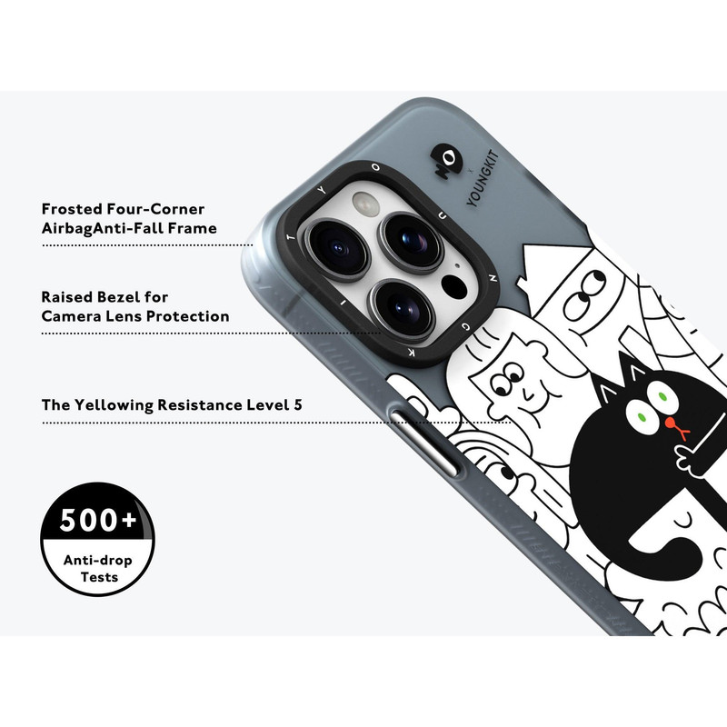 قابهای YOUNGKIT بواسطه طراحی جدید و بسته بندی خاص خود در شبکه های اجتماعی ترند شدند و بازار خوبی برای خود بوجود آوردند. بسته بندی قاب های یانگ کیت شدیدا برای هدیه دادن مناسب هستند و قطعا طراحی چشم نواز آن ها ، عزیزانتان را شگفت زده میکند. قابها از پلاستیک بسیار نرم و باکیفیت تشکیل شده اند. دکمه های نرم و روان و برش های لیزری دقیق جزو مزایای دیگر این سری قابهای برند یانگ کیت میباشد. اصلی ترین دلیل تفاوت قاب های یانگ کیت ، طراحی متفاوت و خاص آن هاست ؛ طراحی که شاید در دست هر آیفون داری نبینید!! همین امر باعث میشود تا داشتن این قاب شما را از آیفون داران دیگر متمایز کند. ضربه گیری خوب و طراحی مهندسی شده و حرفه ای از مزایای دیگر قاب یانگ کیت هستند. در داخل قاب طراحی بصورت شیار شیار انجام شده تا هوا به سادگی رد و بدل شود و از داغ شدن دستگاه جلوگیری کند. متریال استاندارد این قاب موجب شده تا هیچگونه اختلالی در آنتن دهی بوجود نیاید و با خیال راحت میتوانید از این قاب استفاده کنید.